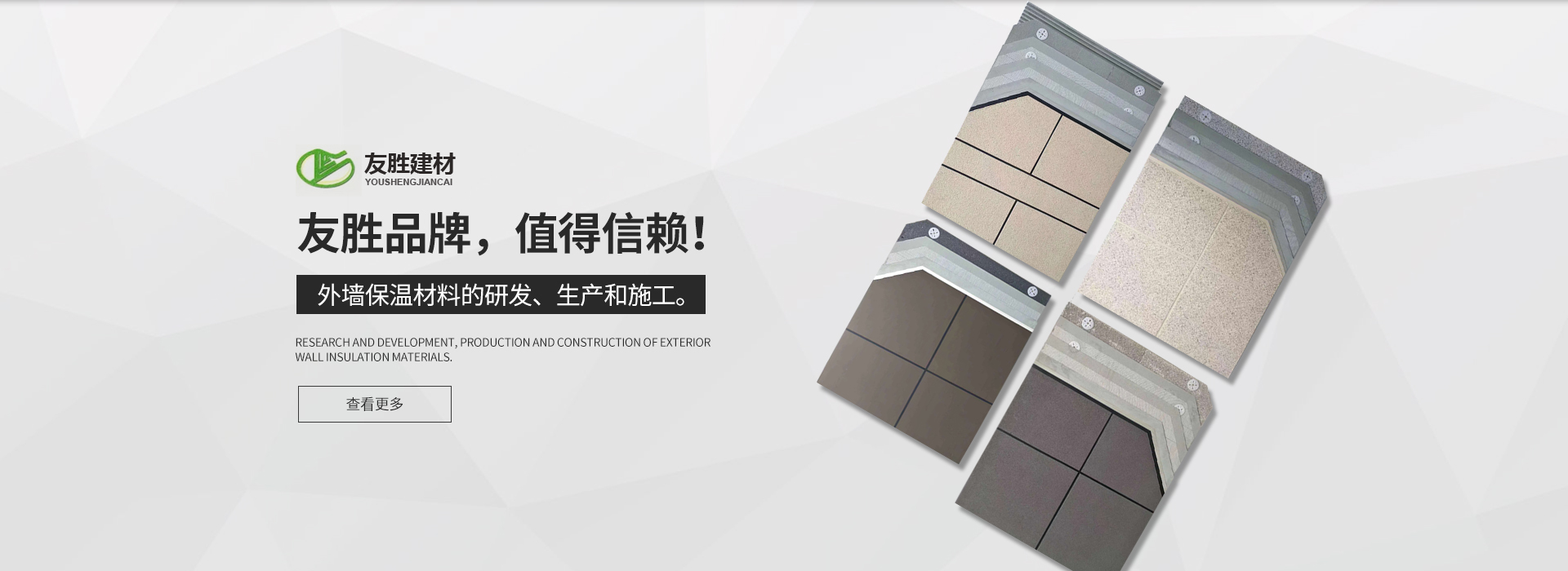 安徽友勝建材科技集團有限公司是一家專業(yè)從事建筑施工與節(jié)能保溫及裝飾裝修生產(chǎn)、施工企業(yè)。企業(yè)于2008年從事外墻保溫材料的研發(fā)。生產(chǎn)和施工?,F(xiàn)公司旗下?lián)碛?安徽舒然裝飾 工程有限公司)裝飾裝修貳級資質(zhì)、防水防腐及保溫貳級資質(zhì)。旗下系列產(chǎn)品有:巖棉板、巖棉復(fù)合板、石墨聚苯板、珍珠巖板、勻質(zhì)板、地坪保溫隔聲板,粘結(jié)、抹面及無機輕型材料等。